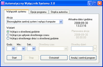 Jeśli potrzebujesz programu, który wyłączy za ciebie komputer po wykonanym zadaniu, zainstaluj niewielki, darmowy i wygodny program jakim jest Automatyczny Wyłącznik Systemu.
